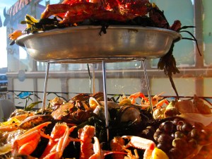 We attacked the unsuspecting victims with impatience and joy. We had no idea what we were doing, and joked that the chefs were spying on us and shaking with mirthful laughter at our novice seafood eating ways. And it was messy, very messy: I had shrimp brains, oyster brine, and bits of crab shell all over my face and hands. But it was oh-so-glorious…