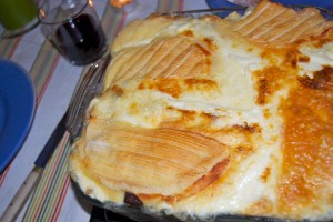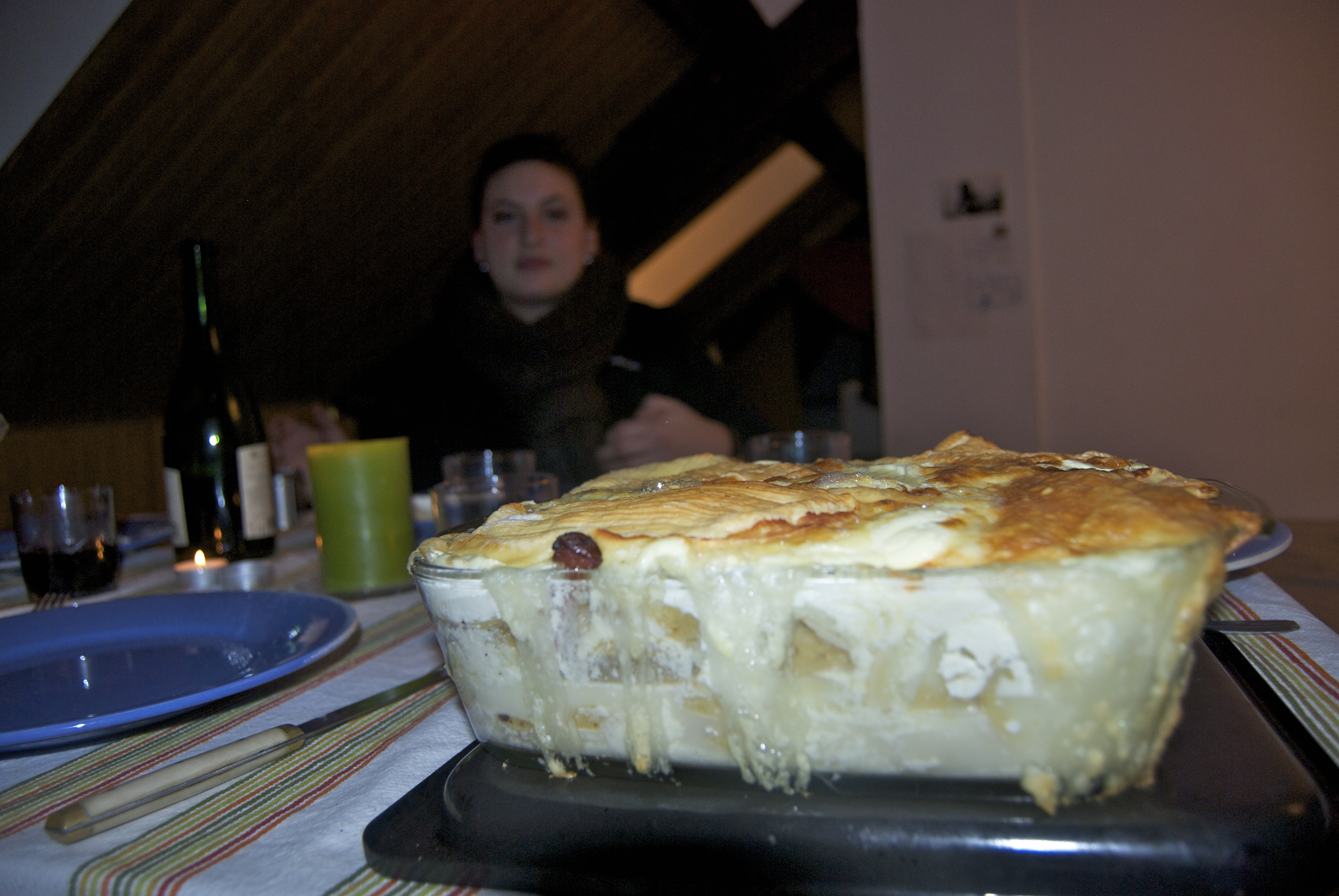 The finished tartiflette right before I pulled it out of the oven and the wolves descended…