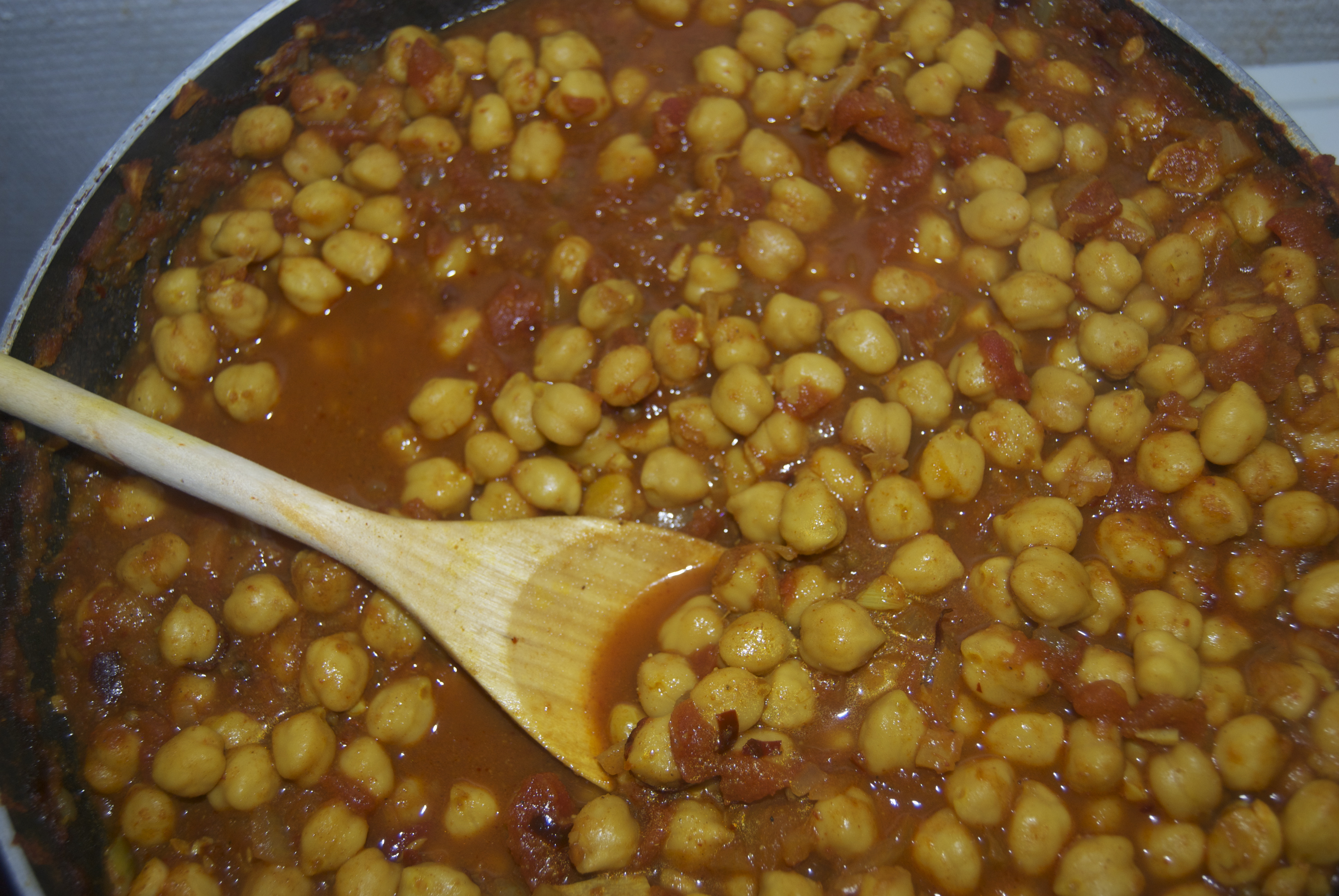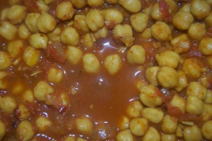 Chana masala (chick peas stewed with tomatoes)