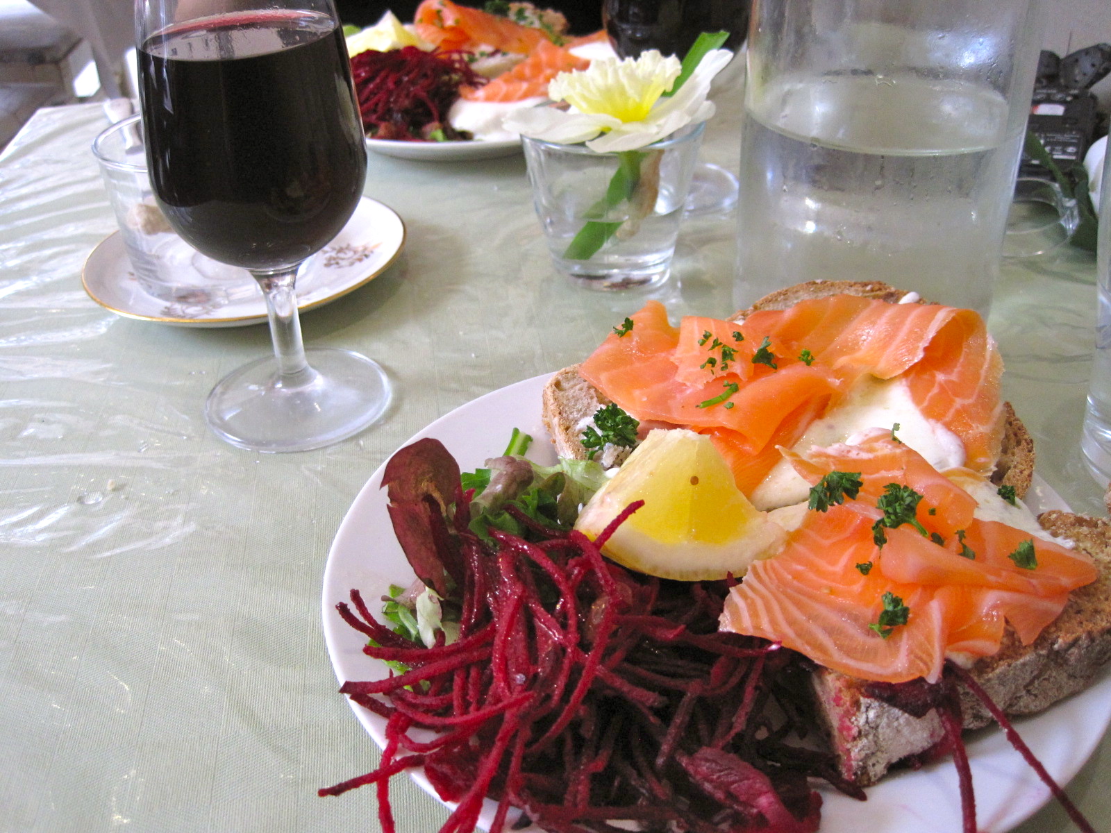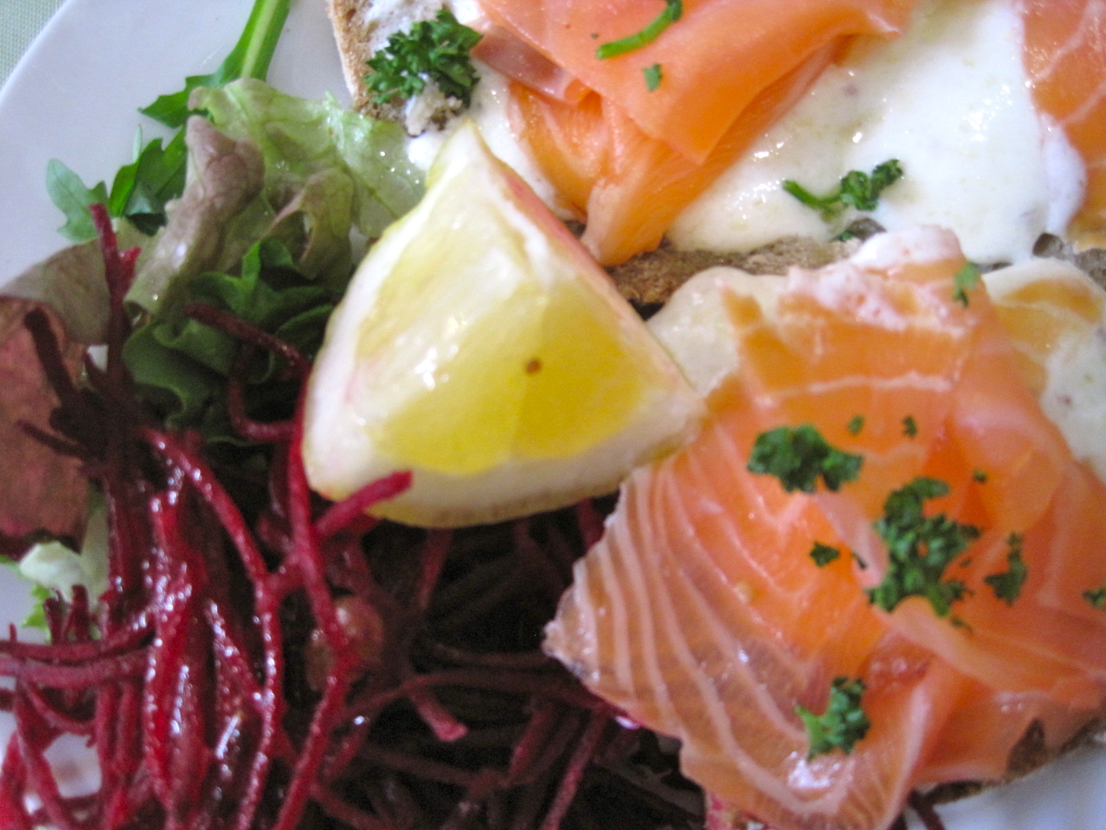Needless to say, during that time, I was craving some serious comfort food. On a rare outing into the real world from my “sick cave”(otherwise known as my tiny attic studio), I met my friend Emma at Apple Pie for lunch on St. Patty’s day to usher in the celebration with homestyle cooking by my most favorite Irish lass in Rennes, Lisa. Can you imagine a more comforting meal than Smoked Salmon, Irish Beef Stew and Irish Coffee Cheesecake? All of it local, fresh, organic, and served with a side of warm Irish wisdom and humor. Voici, the St. Patty’s day meal…