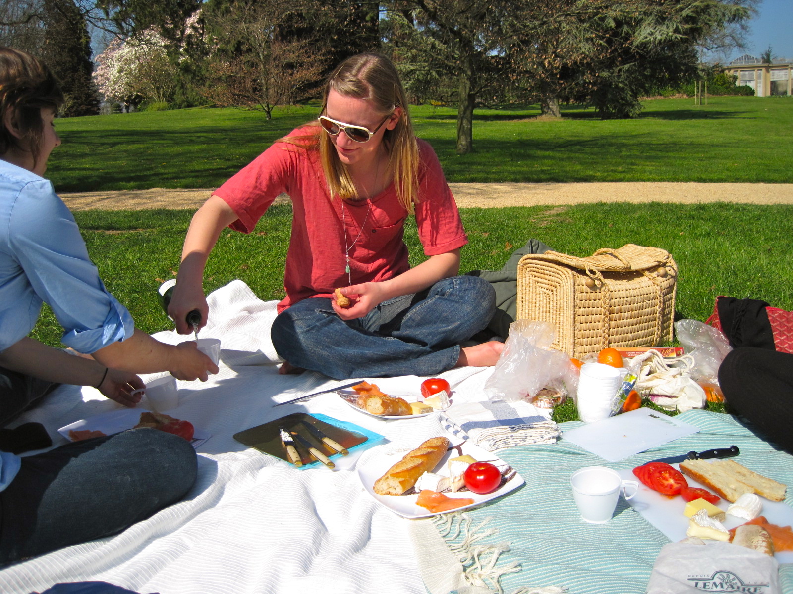 After being a shut-in last week, I am finally becoming human once again this week. Nothing to make you feel alive and joyful like a picnic in the park on a day that feels like summer. Yesterday I met my girlfriends in Parc Thabor, the park that is right around the corner from my apartment. There’s no place to picnic like France: fresh baguettes, tomatoes, smoked salmon, the holy trinity of cheese (comté, camembert and chèvre), and some chocolate and sparkling crémant to wash it all down. And of course, the juicy gossip of four friends that hadn’t all been gathered in one spot in far too long…