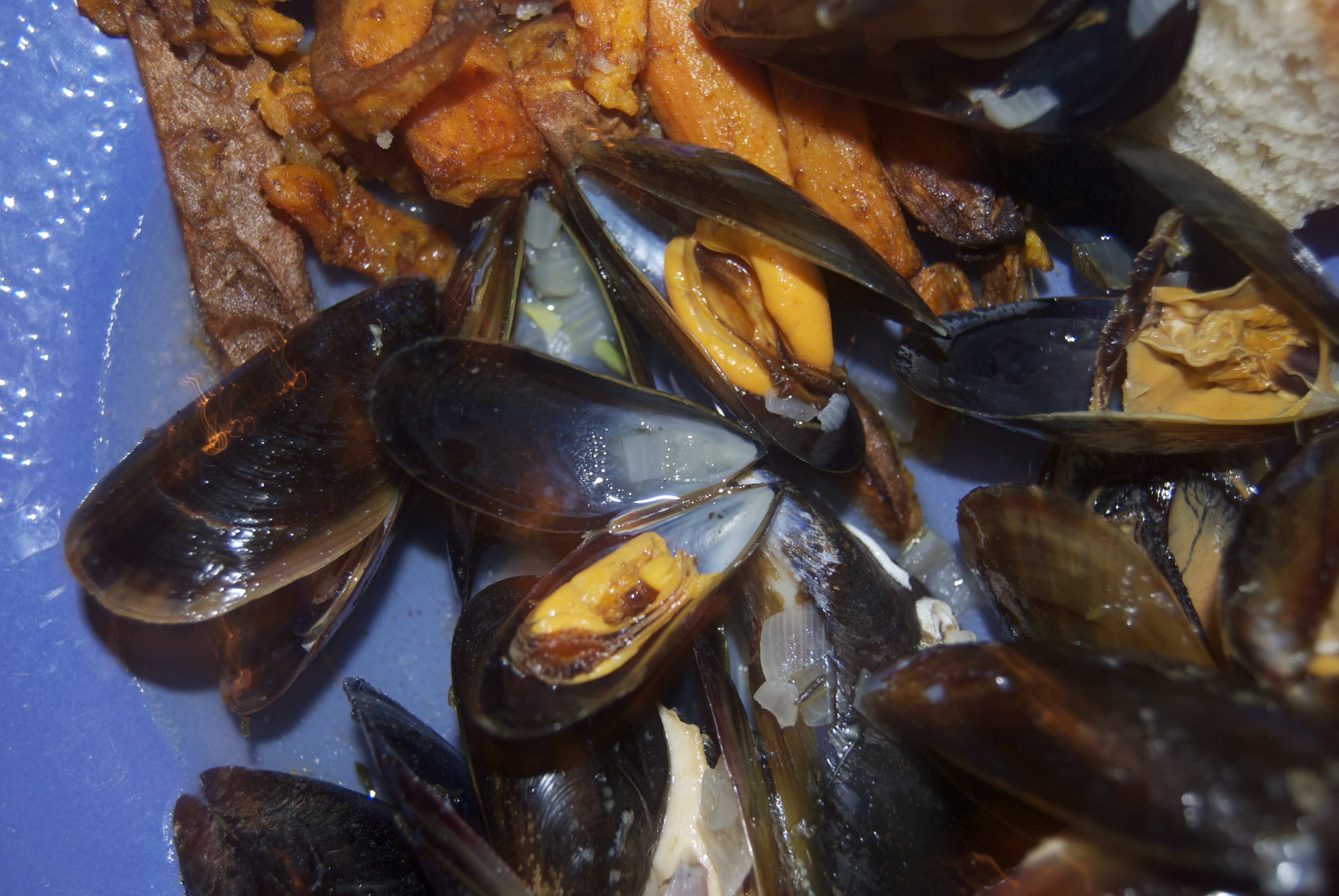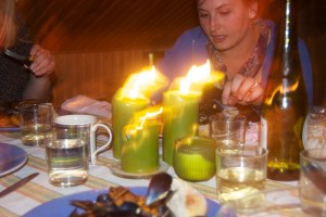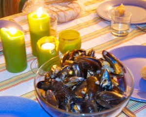 Well, at least around here you can get excellent locally grown mussels, so that’s one thing you won’t have to miss (if you ever come back)! The candles in those photos look like torches, nice effect.