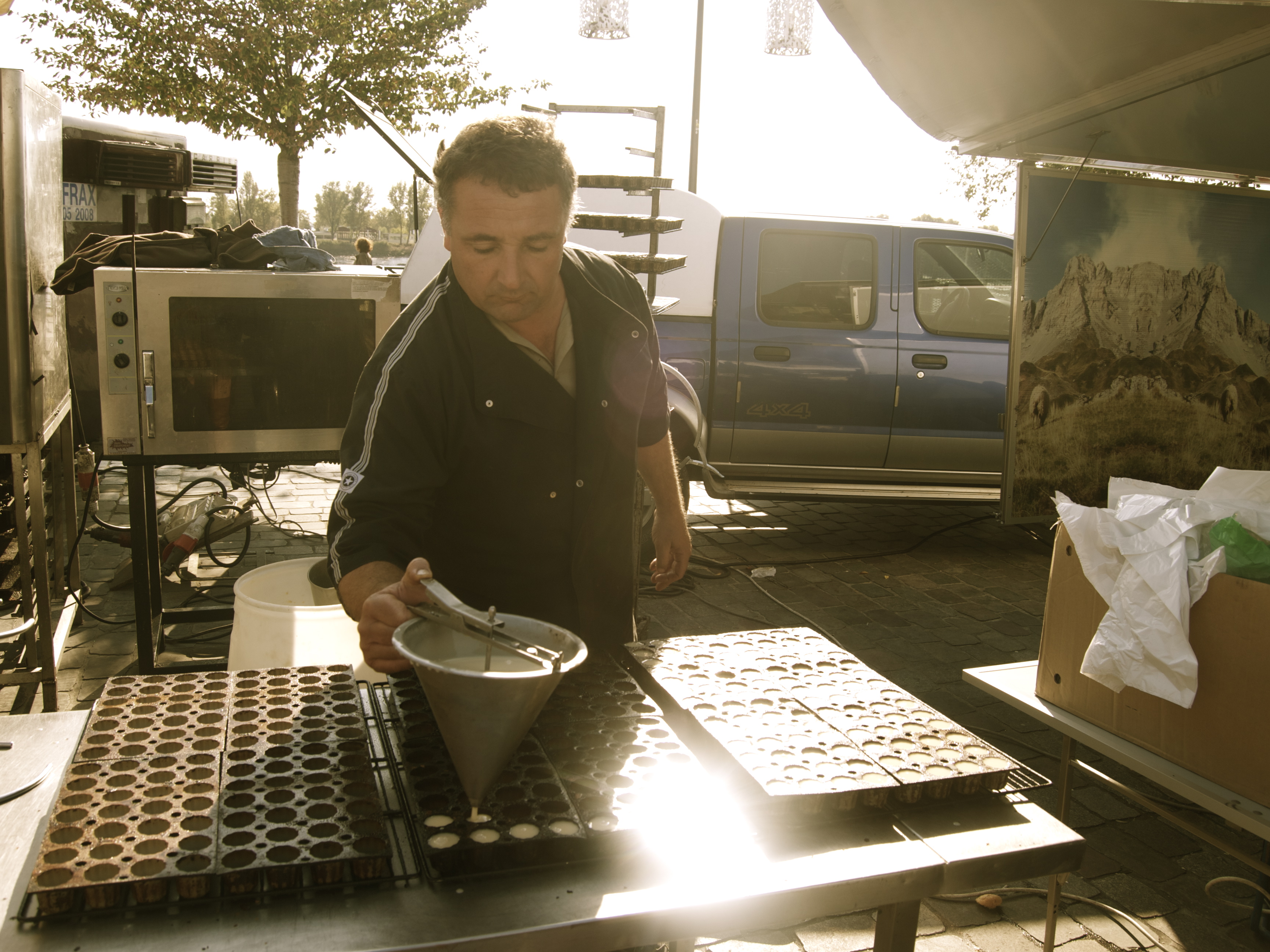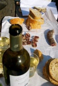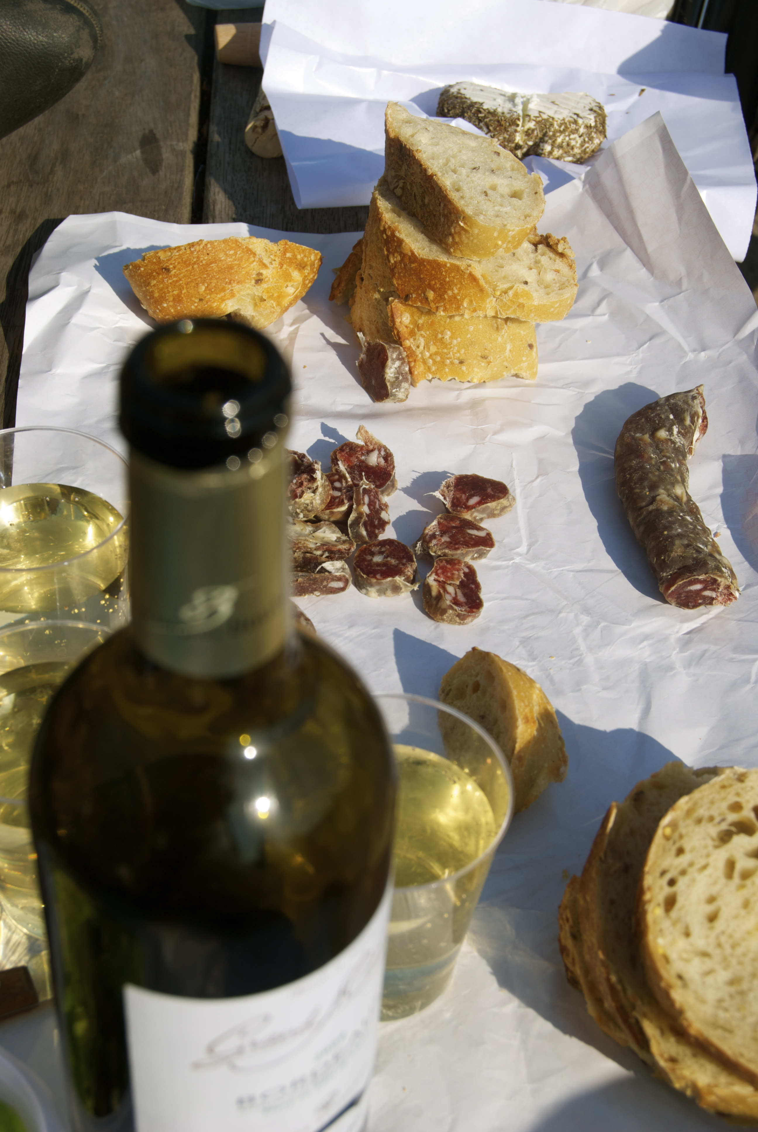 After a day of exploring and a night of dancing, we dragged our weary bums out of bed Sunday morning to make our way over to the Marché des Quais, a huge market that runs along the Garonne river. What better way to cure a hangover than to eat a lot of food and drink some more? We ambled through the market sampling crêpes (not as good as the one’s in Brittany) and wine and stopped to watch a skilled baker turn out batch after batch of canelé, a famous Bordeaux pastry that’s really more of a small cake. We got some goat cheese, the BEST bread ever, figs, duck sausage, and some white wine and settled down on the side of the boardwalk to enjoy our picnic.