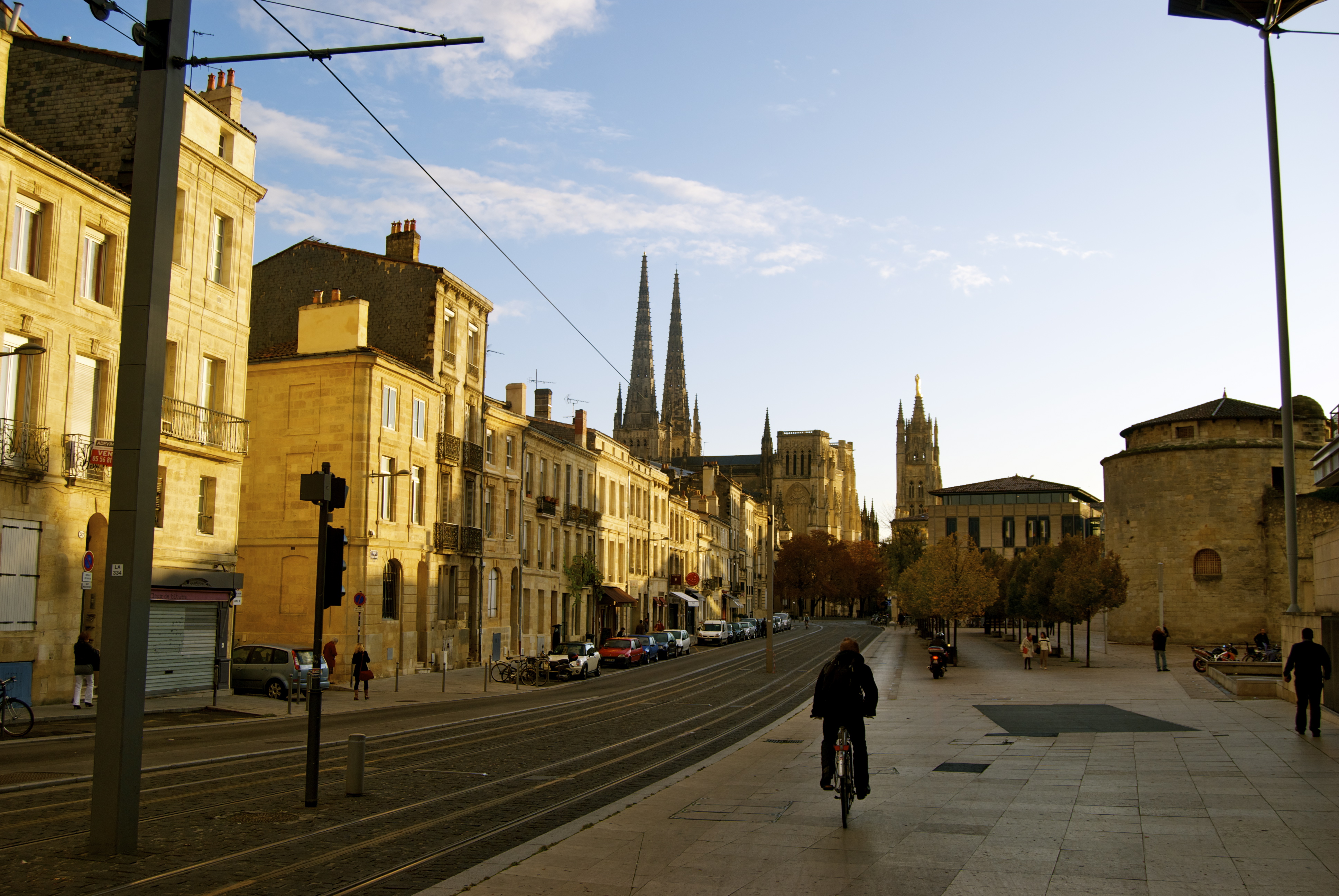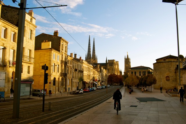 While I didn’t press a button to get there, I did recently travel to Bordeaux by train. I love taking the train in France; I don’t need any form of entertainment while on it. I can spend hours just staring out the window at the scenes flashing past: patches of forests with bright red-orange and mustard-yellow trees, slowly winding rivers, small picturesque villages and fields of golden wheat, green and white clover or yellow and purple wildflowers. A 6 hour train ride later, we arrived in Bordeaux in the middle of the night. We were struck immediately by the wide open spaces and the array of massive, beautifully lit historic buildings. Bordeaux is a city that feels incredibly spacious by French standards: the boulevards are wide and sprawling, and the city is dotted with large squares and empty spaces. Even the ancient city center doesn’t feel cramped and dense. We finally navigated our way to our hotel after a few failed attempts (we tried to check into a different hotel that had a similar name to ours) and crashed into bed and set our alarms for early the next morning so we could get up and discover the town.