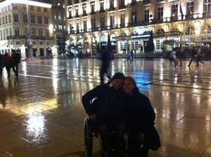 Sitting in the giant sunlit square I realized that one of the other things that struck me about Bordeaux besides its’ size is how hip and edgy it is. While researching Bordeaux I had read that up until 10 years ago Bordeaux was stuck in a bit of a rut; it was sooty and dirty and neglected. Under its’ current mayor it has seen a giant scrubbing of sorts. We saw evidence of this in several buildings that were halfway cleaned: the difference between the before and after is vast. Only a city that is coming from such a drab, neglected place could spring forward in such a way. In between its revitalized industrial spaces, its new tramway and its hip, young and urban student population, Bordeaux feels like the place to be.