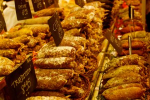 The next day (my birthday and Halloween) I couldn’t have asked for a better way to spend my birthday: wandering from stall to stall at a massive food and wine expo. We paid 6 euro to get inside the hall, and once in we could sample from any of the vendors. We bounced from wine stall to wine stall, tasting wines from all over France. Then we would realize we were a bit too rosy from the wine and we would switch to the food stalls: sausage, foie gras, chocolate, nougat, pastries, macarons…Then back to the wine. This wondrous cycle repeated for 5 hours until we just couldn’t put another thing in our mouths and decided to escape the ever-growing mass of gourmands.