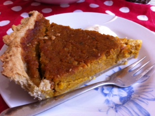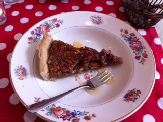 You may remember that I’ve written about Apple Pie before, an organic bilingual tea salon/restaurant owned by Rennes’ resident Irish lass Lisa. Apple Pie came to my rescue once again today by giving me my American fix of Thanksgiving’s greatest gift: pie! Despite living in a country where people are generally unaware that Thanksgiving exists, I was able to get into the holiday spirit today because of the traditional Thanksgiving treats that Lisa whips up each year around this time.