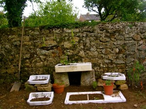 So, as a result I have been oscillating between two states of existence. The first: being hyper-productive, running around trying to organize my life and squeeze the smallest glimmer of hope out of any French bureaucrat who will talk to me. The second: running away to the countryside, away from my responsibilities and concerns and away from Rennes, the city where my life is changing as friends move away and my work is winding down. I’m not sure what’s next, but in the meantime, check out the beginnings of what is soon-to-be an epic sink herb garden. I may not be able to control my fate, which is in the hands of various French bureaucrats, mais au moins, I can work out the frustration in the garden with the pick-axe.