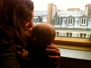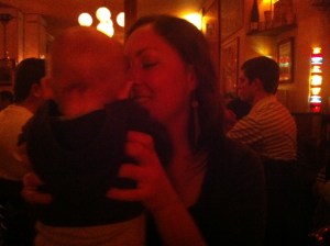The next day saw me impatiently awaiting at the Gare de Nord the arrival of my sister’s train from London. What a brave woman to travel across the Atlantic with her then 4-month-old son. They arrived exhausted and jet-lagged so we headed directly to the apartment to freshen up and then went to dinner at Chez Janou (again…I really like that place.) Once again, the meal was magnificent. While we worked on the mussels, prawns and the duck, Rowan worked on being so adorable that everyone in the restaurant had to stop and stare.