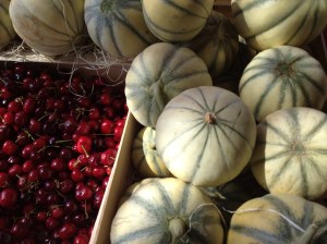 Day 2: We had a lazy morning in Arles, and after some mishaps with confusing directions and narrow streets, made it safely out of the small city and drove the short distance to Nimes. We drove by fruitstand after fruitstand advertising local cherries and melons and finally when we could stand it no longer pulled over to sample the goods. We snacked on fruit and bread and cheese for lunch…my favorite kind of meal.