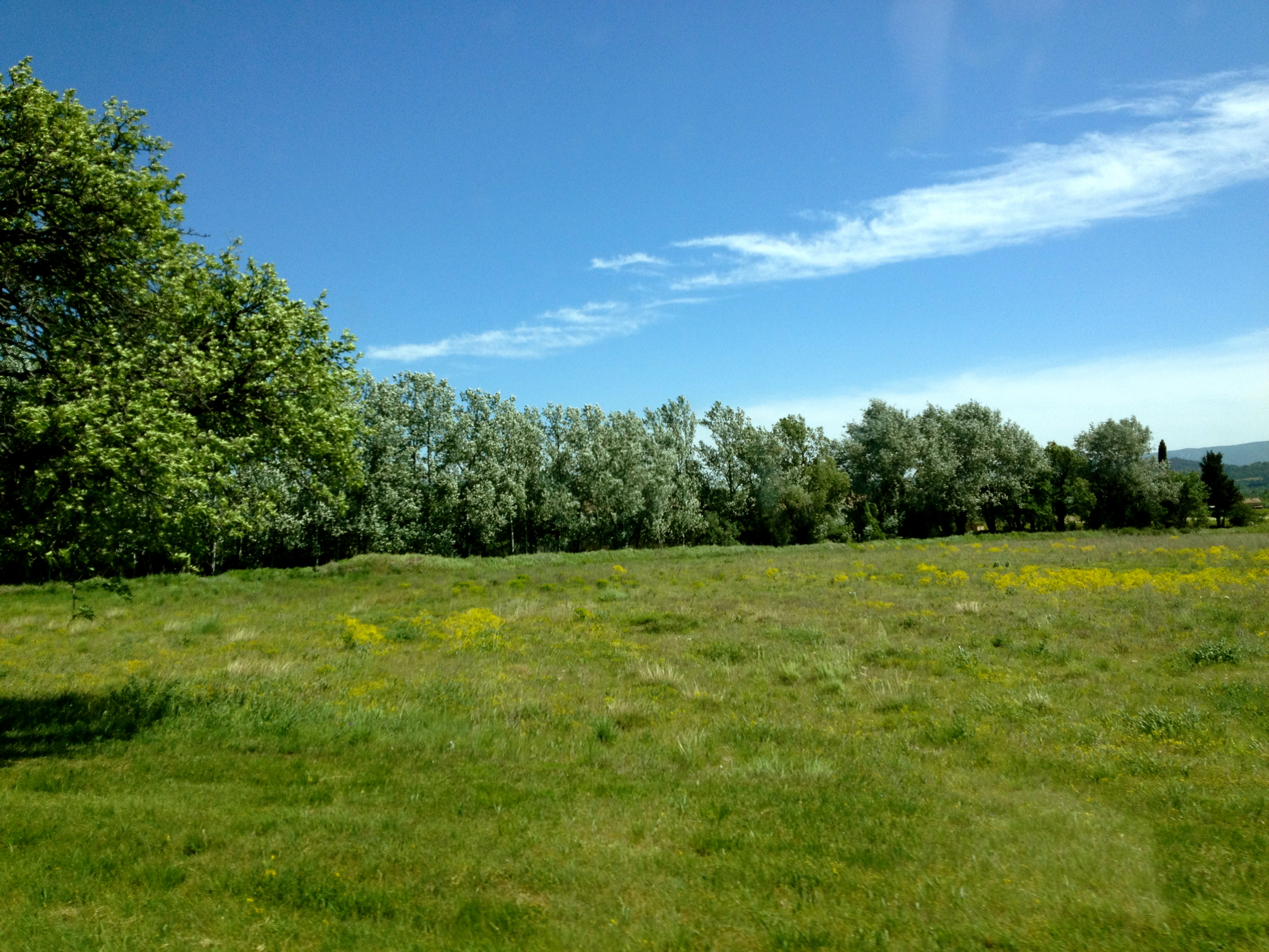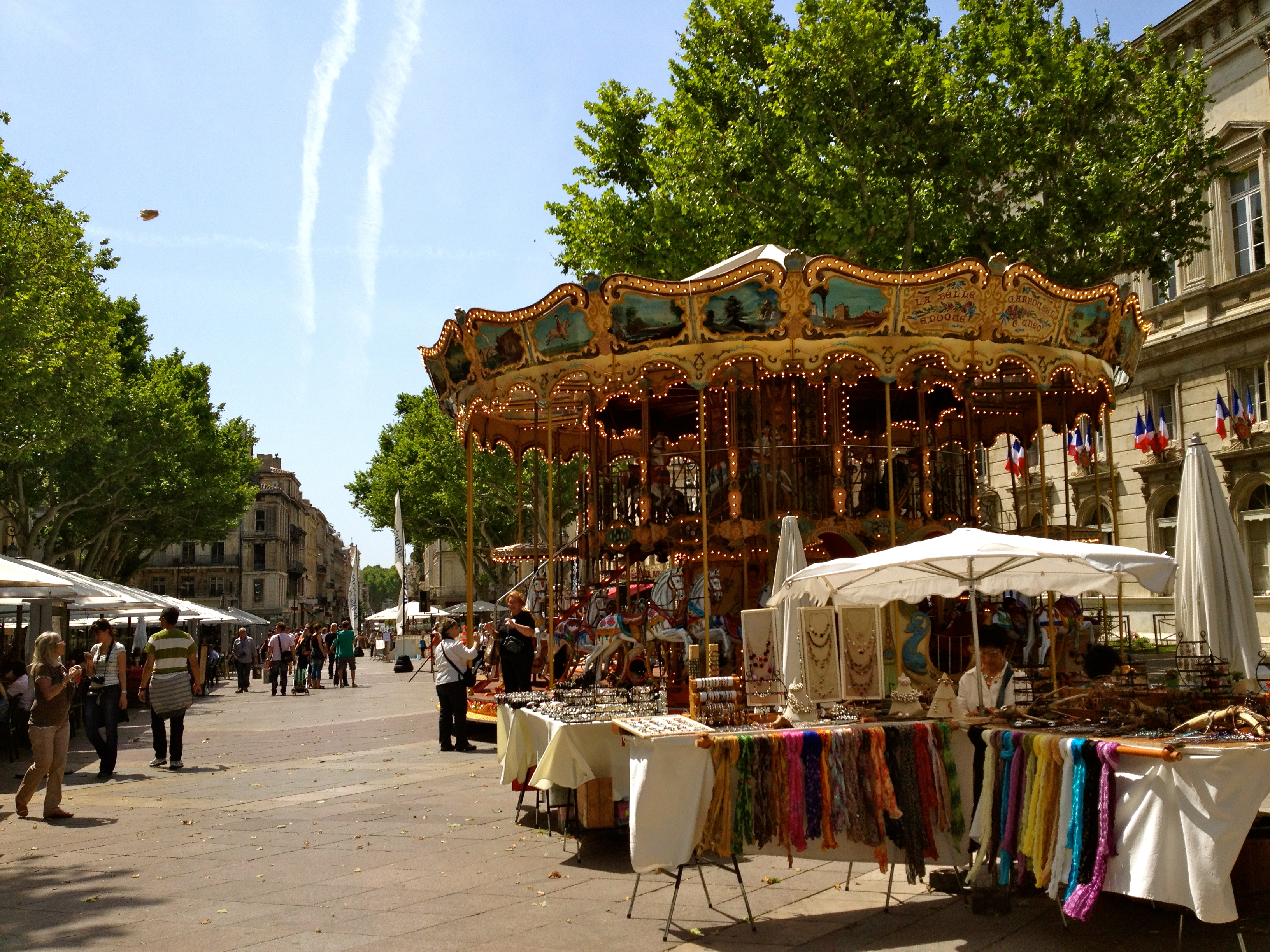 The familiar rows of shady plane trees and the chalky blue sky of Provence that I missed so much.