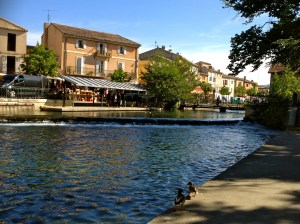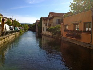 After a full day exploring Avignon we headed to the small market town L’Isle-sur-la-Sorgue. We arrived just in time to have a dinner of bread, cheese, olives and wine on the hotel terrace, soaking up the impeccable Provençal weather.