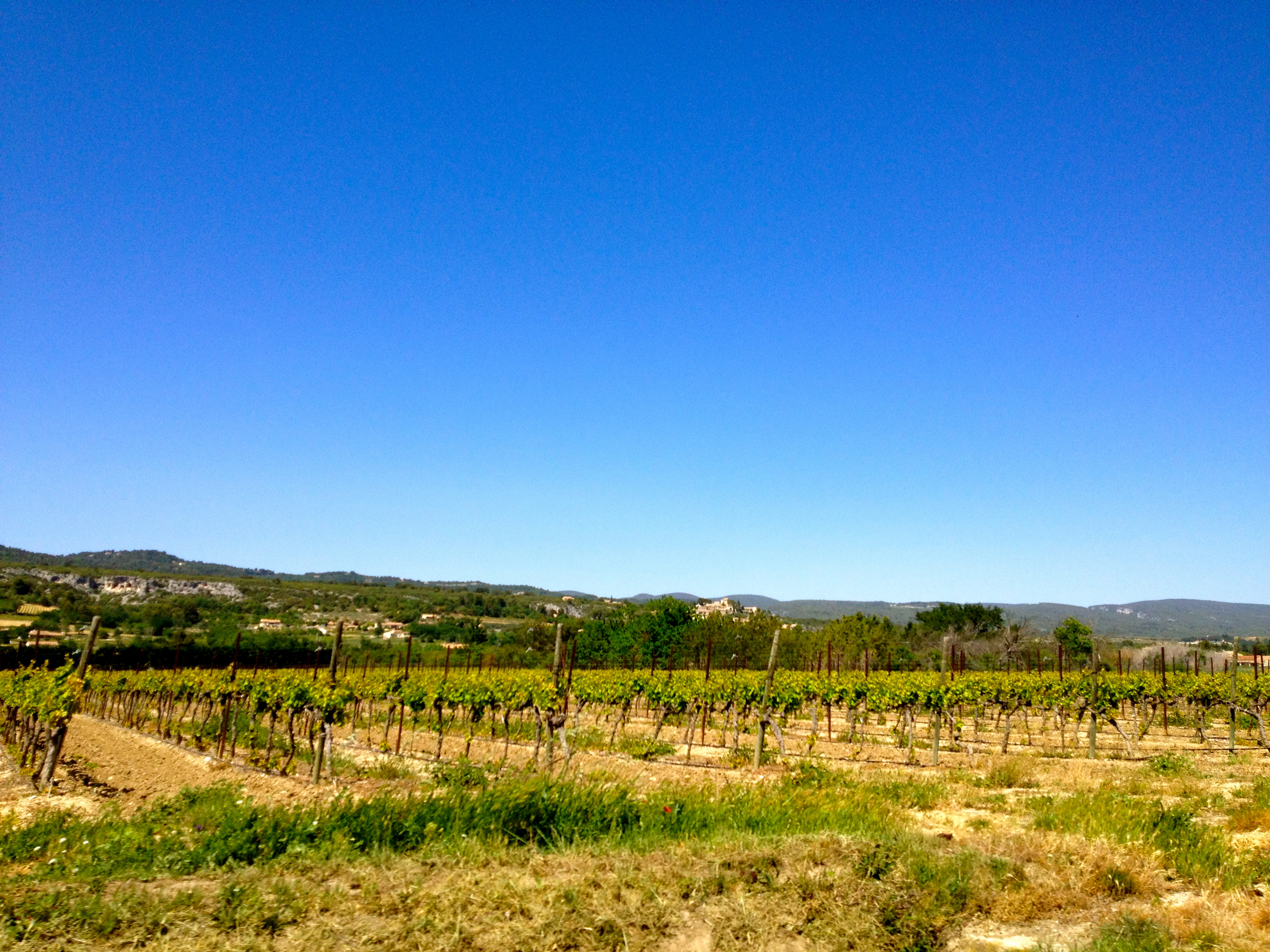 After a magical morning in Fontaine de Vaculuse, we hopped in the car and drove up into the windy hills above. We drove with the windows down, popping cherry after cherry into our mouths. We enjoyed the varying landscapes as they flashed by: valley below to hilltop village above, olive grove to lavender fields, ancient Roman ruins to ordered rows of grape vines. The weather was perfect, of course, and we saw more than one beautiful Provençal manor which beckoned us to drop everything and pick-up and move to Provence.