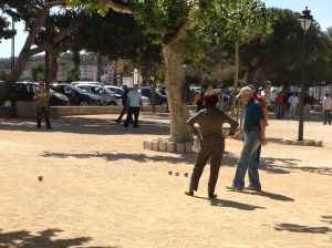 Old people playing pétanque or boules, a very typical sight in Southern France. It’s a game which sort of ressembles bocce ball.