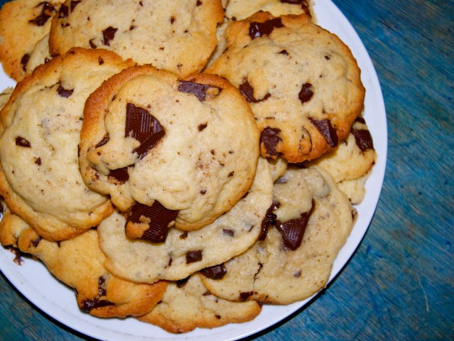 But you can’t take American style chocolate chip cookies away from her. Despite the many obstacles that prohibit making a true American style chocolate chip cookie here in France, I’ve managed to come up with a pretty tasty recipe (if I do say so myself). The obstacles being that it’s difficult to find many of the key ingredients such as brown sugar, vanilla extract and chocolate chips. You can make your own brown sugar with molasses and regular white sugar, but I hardly ever have molasses on hand as that is not the easiest thing to find here, nor the cheapest. And to be honest, the molasses here tastes weird to me. While they have vanilla flavor here which can be found in the baking section of most grocery stores, it is a freaky concoction of vanilla caramel syrup with sugar added, and is far too sweet. They also have vanilla sugar, which are little packets of vanilla flavored sugar, but that never seems strong enough and the flavor always seems to just disappear. The pépites de chocolat or chocolate chips which are available in the supermarkets are terrible quality and freakishly small in size. In spite of it all, I have prevailed! Voici, my recette for Chocolate Chip Cookies in France…