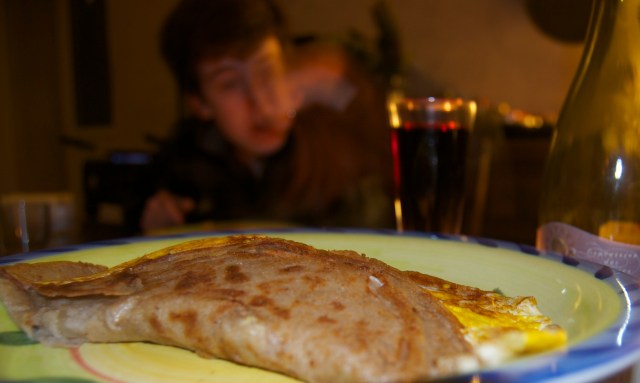 Finally, the galettes were ready. Egg, sausage, cheese and caramelized onion. Trop bon!