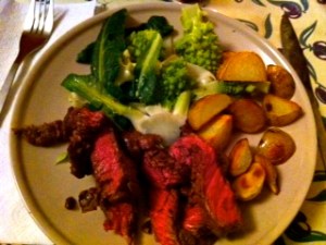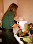 But back to the meal. Once again, I was in charge of the turkey and once again I solicited the wisdom of Lynne Rossetto Kasper, my favorite foodie. Her turkey recipe is foolproof, and delicious. Anything with white wine and a hoard of herbs is good in my opinion. Frighteningly, I was also in charge of carving the turkey, and miraculously I did a decent job of it! I don’t say miraculously lightly…there were 14 bottles of wine consumed that night and only 11 of us drinking it.