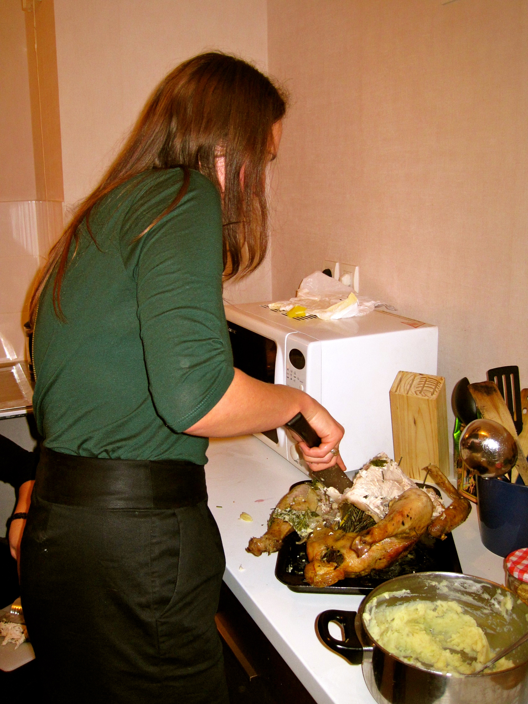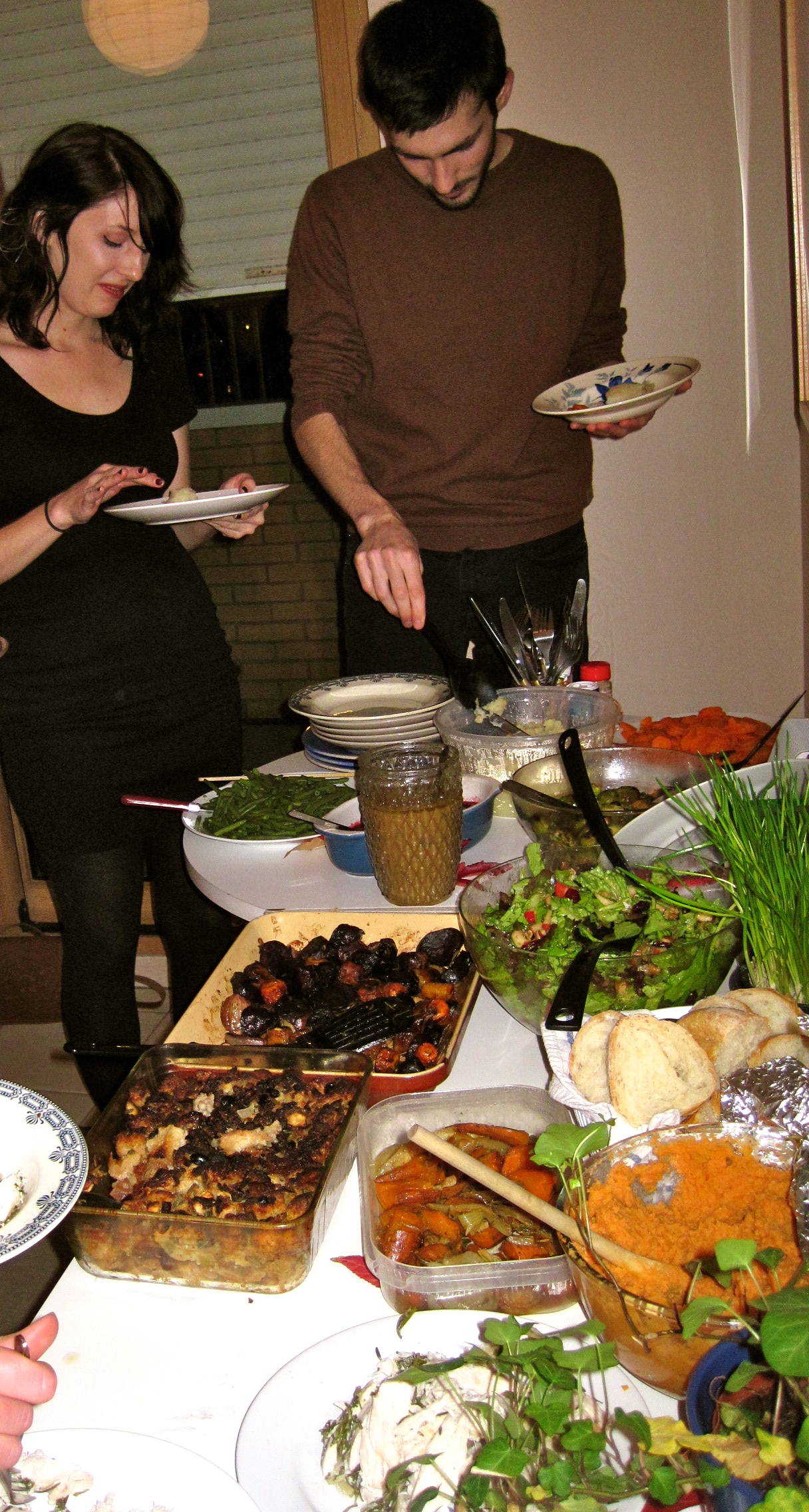 For dessert we had pumpkin cheesecake, apple pie and ice cream, but by that point I was too warm and fuzzy and full to document it (I dropped my poor camera in the sweet potatoes earlier, hence the lack of photos). All in all it was another very successful International Franglish Thanksgiving!